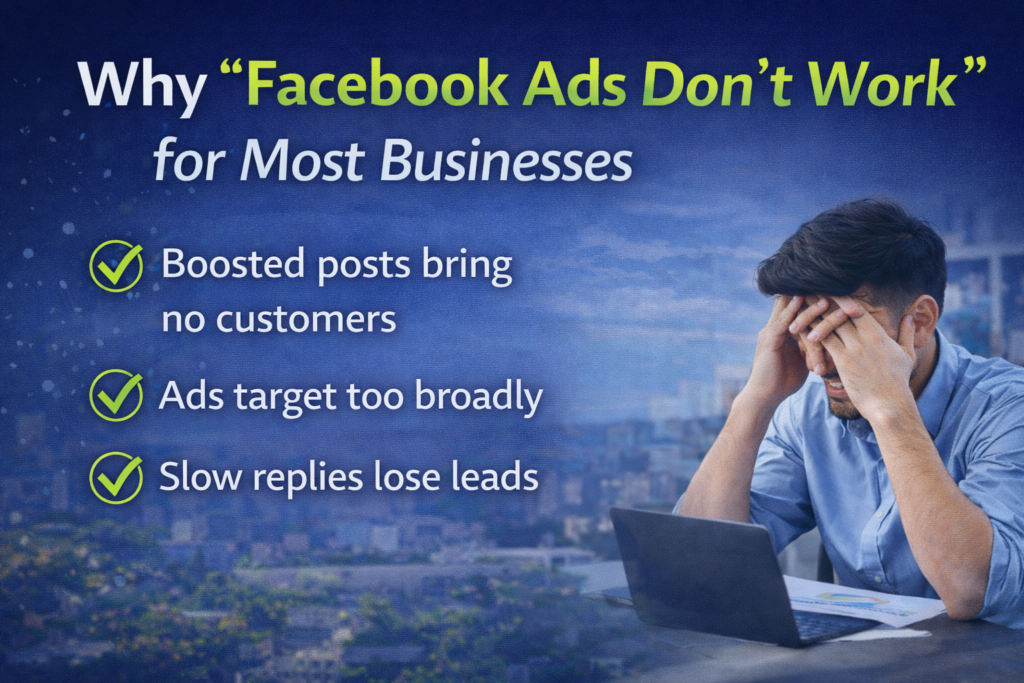 Many businesses only boost posts, which spreads content but doesn’t guide people towardcontacting you. Others target very large areas, assuming wider reach means better results, when it usually just increases cost.